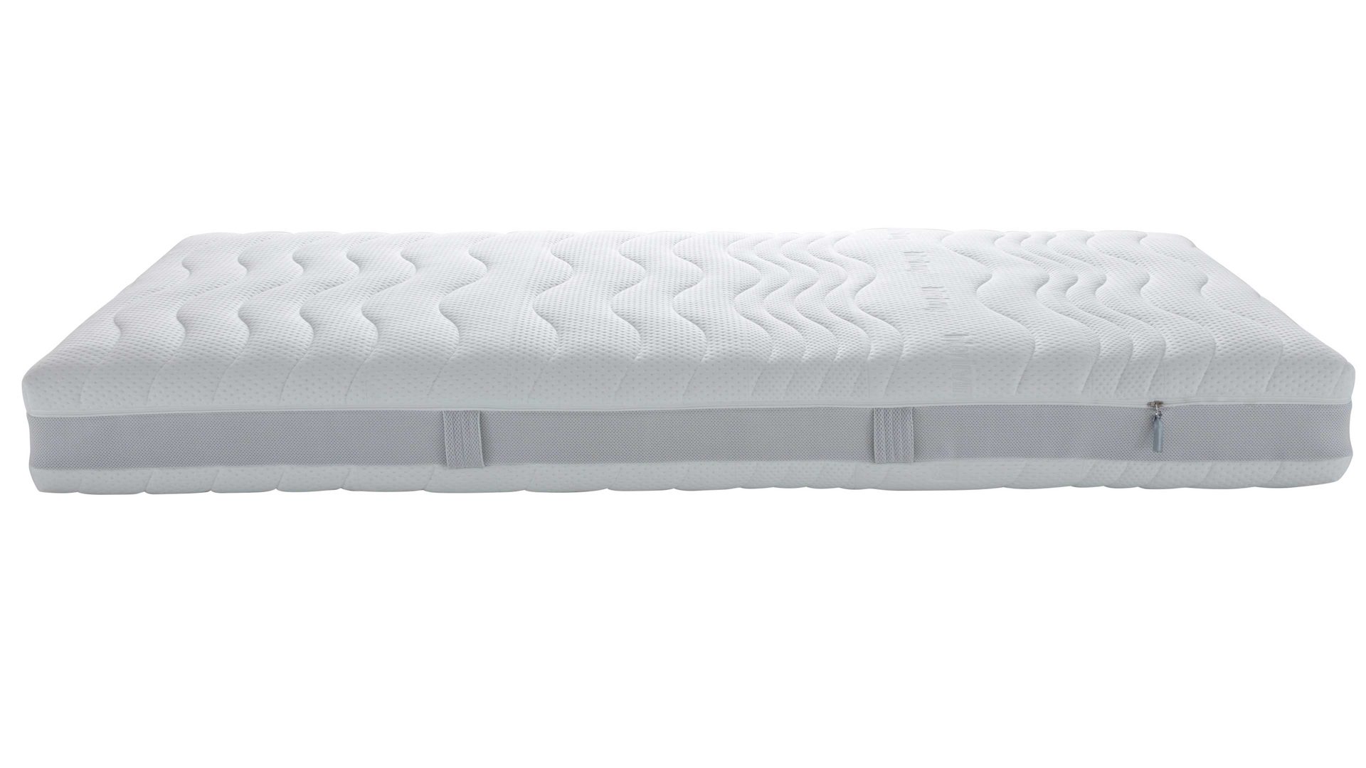 Der atmungsaktive Lyocell-Jersey-Bezug ist mit Hygienevlies versteppt, mit einem umlaufenden Klimaband für optimierte Belüftung ausgestattet und verfügt über praktische Wendeschlaufen. Für maximale Hygiene lässt sich der Bezug problemlos abnehmen und bei bis zu 60 °C in der Maschine waschen.