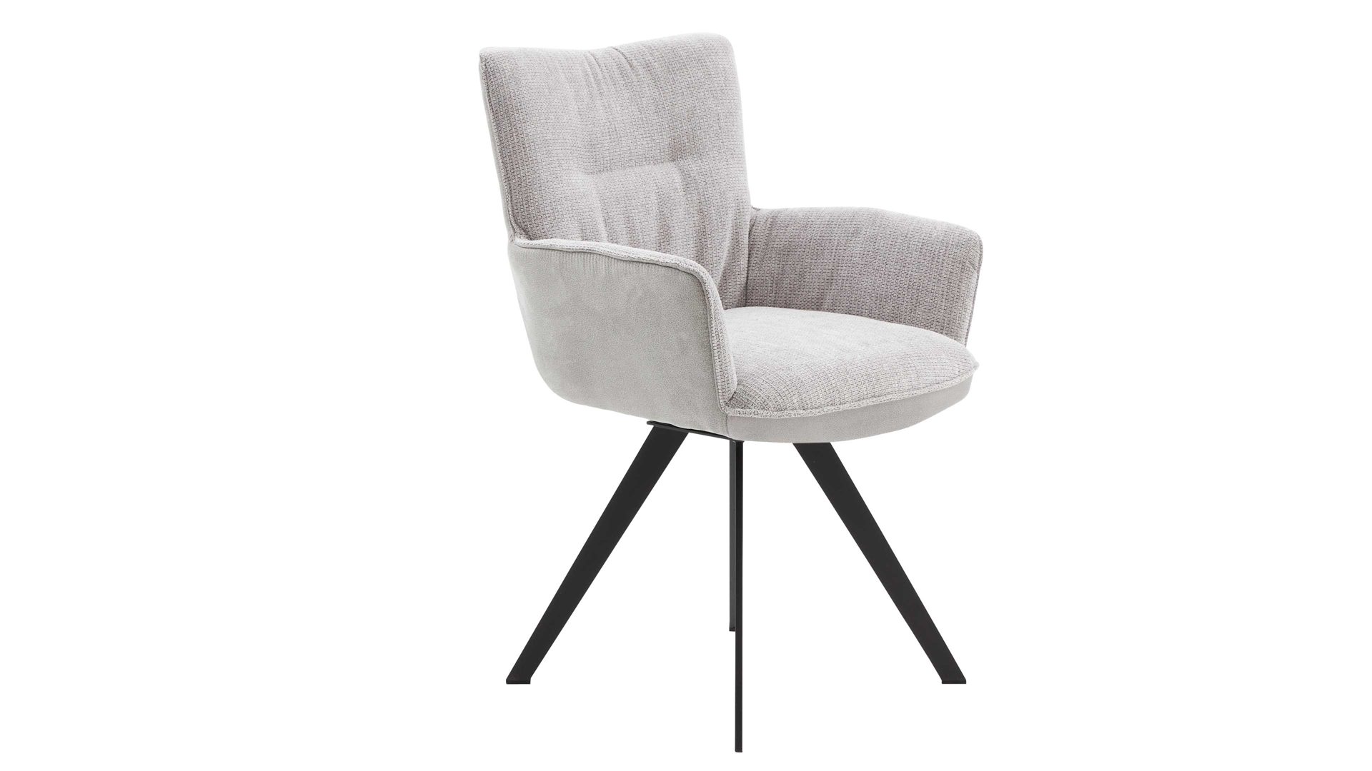 Der moderne Schalensessel 9222-04-959 aus der Interliving Esszimmer Serie 5111 kombiniert ein schwarzes Eisen-Stativgestell mit einer stilvollen platinfarbenen Bezugkombination.