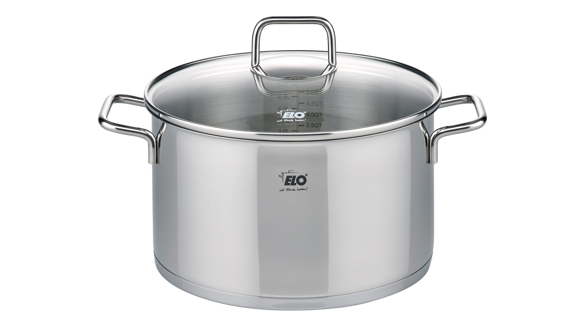 Profi-Qualität für die heimische Küche. Der ELO® Fleischtopf Citrin mit Glasdeckel aus 18/8 Edelstahl ist einfach ideal für die Zubereitung von Fleisch- und Schmorgerichten aller Art geeignet.
