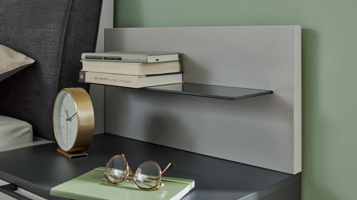 Das Paneel 30416 aus der Interliving Schlafzimmer Serie 1207 überzeugt durch seine hochwertige Optik und funktionale Gestaltung. Mit satingrauen Lackoberflächen und einem anthrazitfarbenen Glasboden fügt sich das Paneel harmonisch in moderne Schlafzimmerwelten ein. Es wird linksseitig am Bett montiert und ist damit die perfekte Ergänzung zu den vielfältig planbaren Bettgestellen dieser Serie. Die Maße betragen ca. 46 x 30 x 18 cm (B/LxHxT) – kompakt und doch ein echter Blickfang.